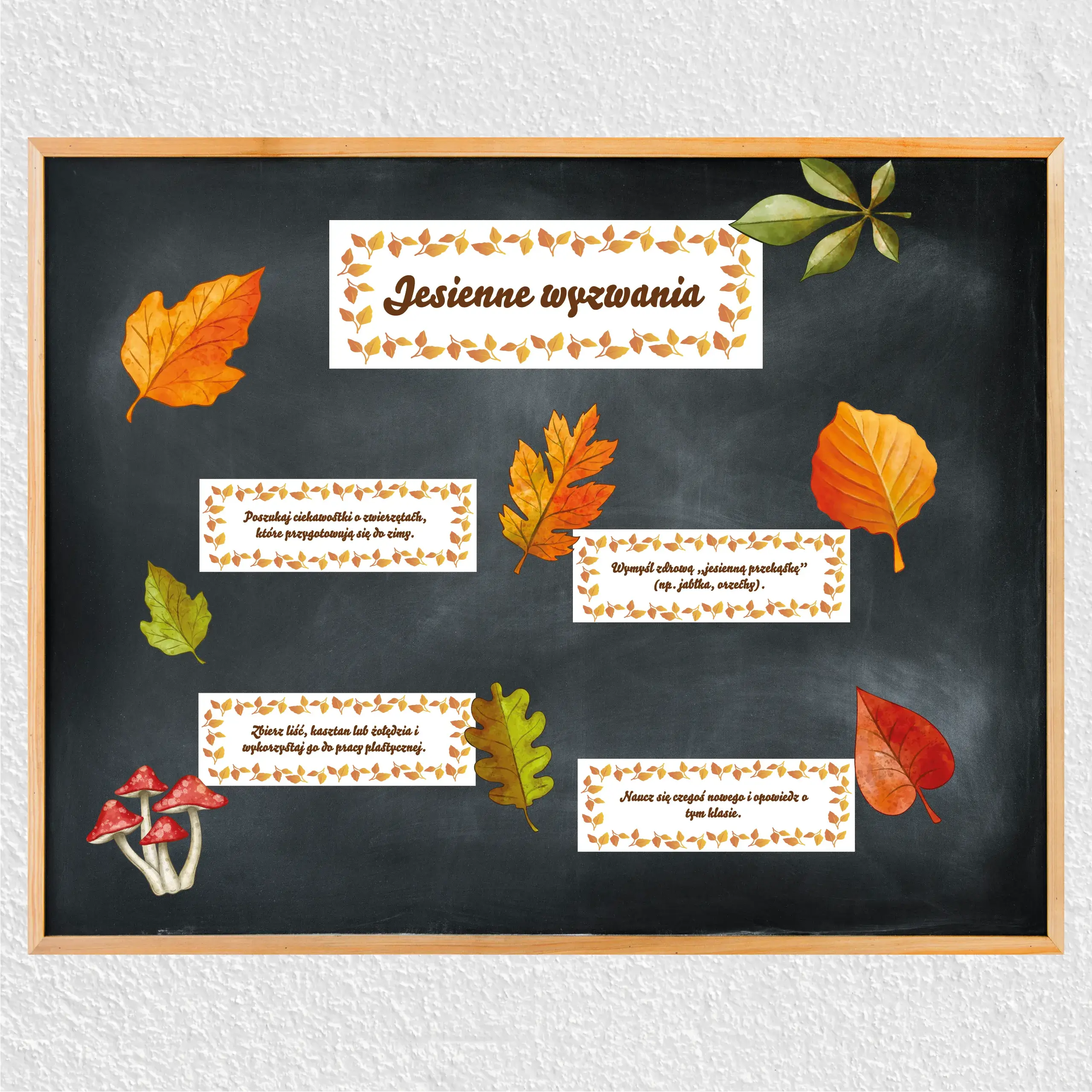 - „Jesienne wyzwania” – 16 kart z zadaniami, które angażują uczniów w codzienną pracę i rozwój.